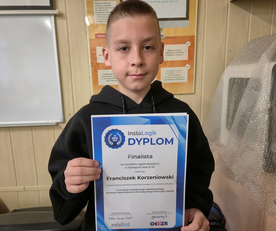 Z radością informujemy, że uczeń naszej szkoły Franek został finalistą ogólnopolskiego konkursu InstalLogik – jednego z najbardziej wymagających konkursów informatycznych w Polsce.